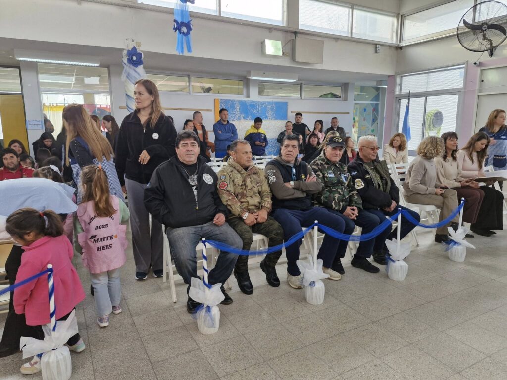 La ceremonia se llevó a cabo en las instalaciones del establecimiento, ubicado en el barrio Doña Justa, con la participación de autoridades escolares, municipales, familias, docentes y alumnos. También dijeron presente representantes del Centro de Veteranos de Guerra del partido de Escobar, quienes fueron especialmente homenajeados por su compromiso y servicio a la Patria.