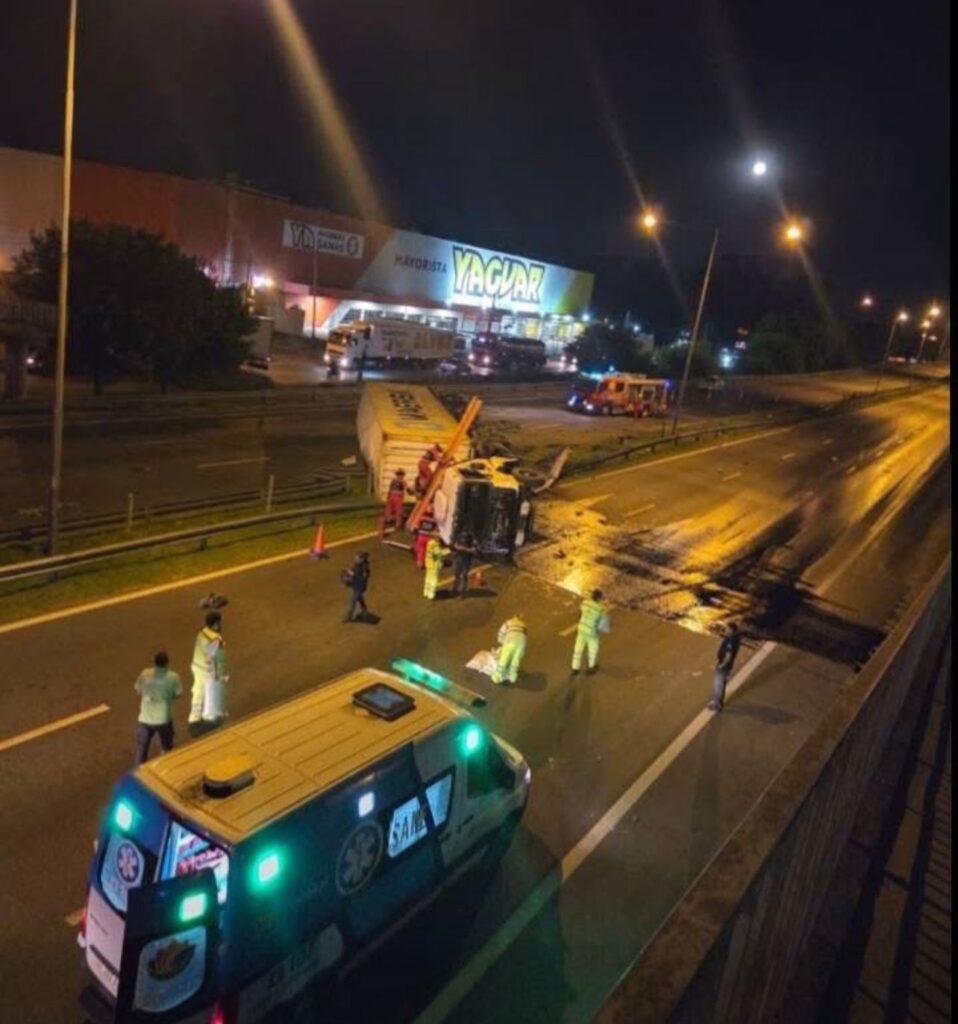 Un camión cruzó de carril y terminó volcado sobre el carril rápido de la mano contraria, provocando el corte total de la autopista en ambos sentidos.