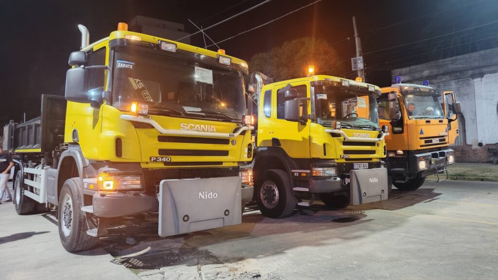 El Cuerpo de Bomberos Voluntarios de Escobar presentó oficialmente anoche tres nuevos camiones marca Scania, incorporaciones que fortalecen de manera significativa el parque automotor de la institución.